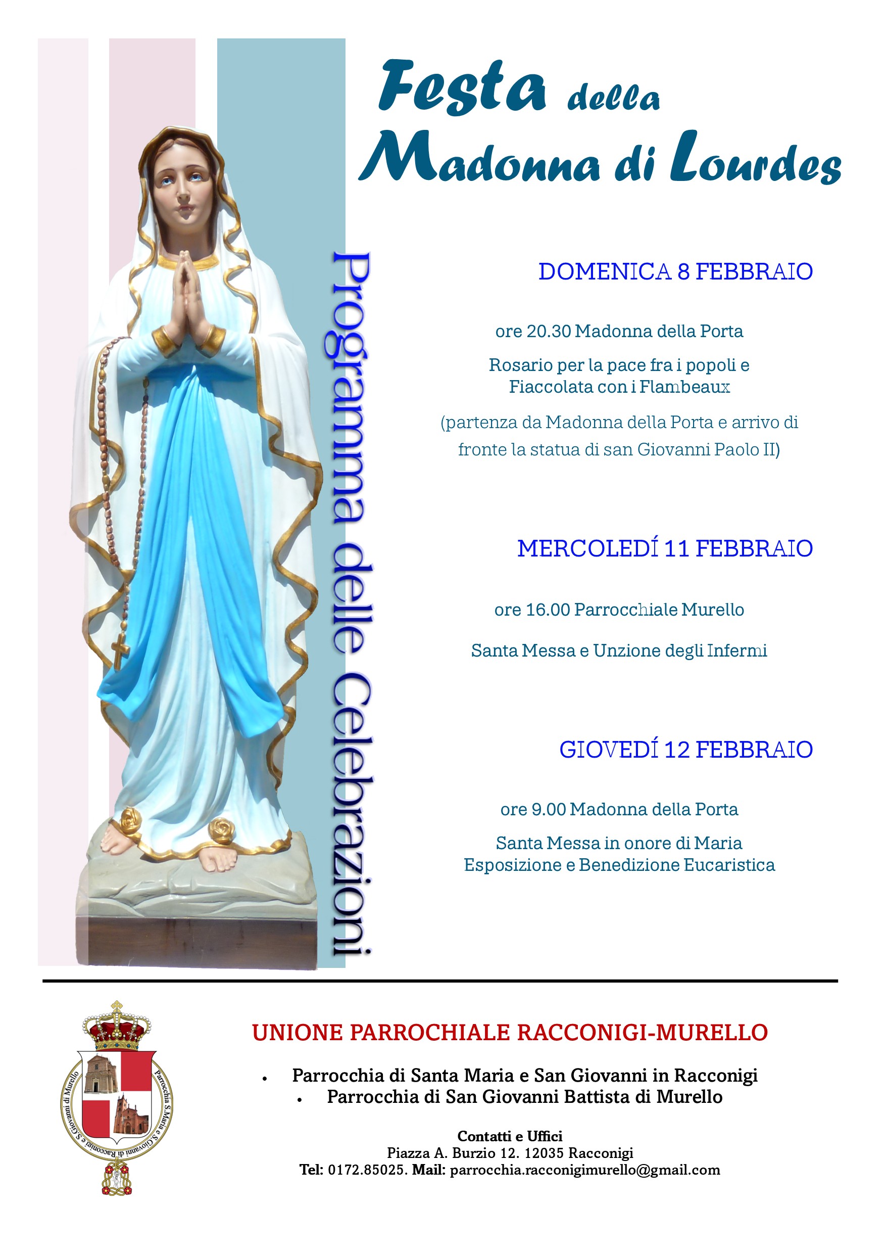 Questi gli orari delle celebrazioni per la festa della Madonna di Lourdes a Racconigi e Murello